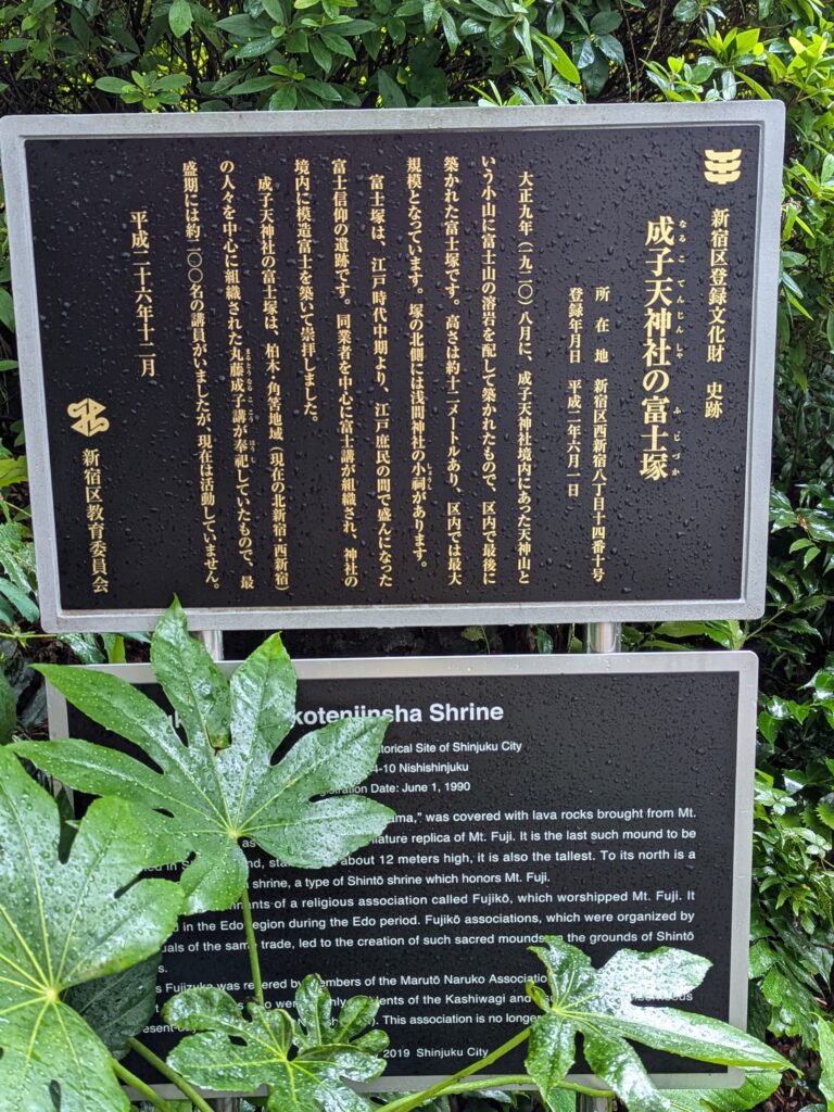 富士塚は大正9年(1920年)、境内の小山に富士山の溶岩が運ばれて築かれた。新宿区登録文化財になっている。霊峰富士・・・この日は雨でちょっと怖かったので上らなかったけど、頂上まで登ることもできますよ。