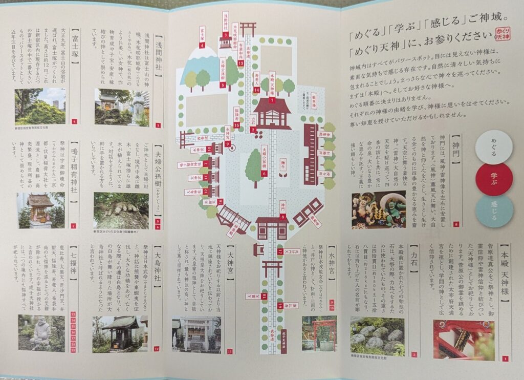 もともとは天照大御神から始まり、天神様から現在にむかって、時代の流れとともに様々な神様が勧請されて集まってきた神社です。鎮座する多様な神様たちを知ると、ここがとてもパワーのある神域であることが感じられます。