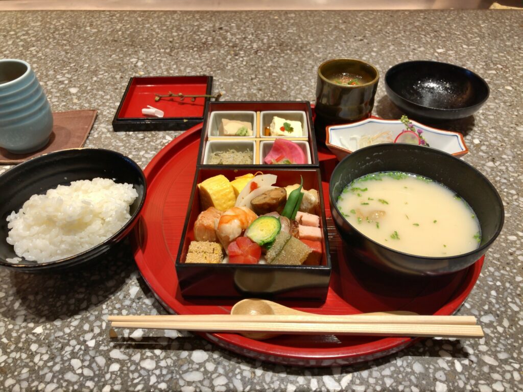 カウンターで頂く京弁当。こんなおいしい日本料理を久々に頂きました。