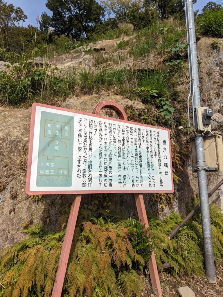 さて穴のほうですが・・・・もともとは穴には石の蓋が立て掛けられていたそうですが、今は中に入ってみることができます。亡骸を置いていたらしき場所が区切られていたり、両サイドにその場所が作られていたり、人が立っても平気な高さの穴もあれば入るのも大変な低い穴もあります。墳時代とはいえ、少し身分の高い人とかその家族がまいそうされていたのでしょうか。