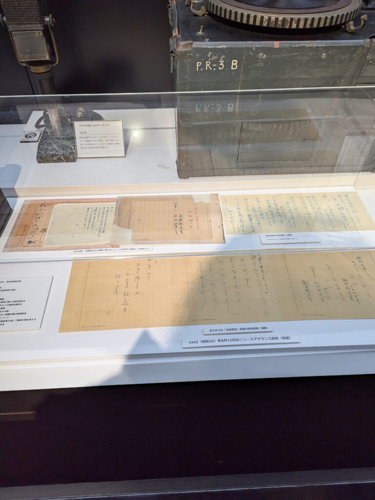 世代ごとに楽しめる「あ、これ観てた!」という懐かしさ。それとは真逆の終戦玉音放送ニュースのアナウンス原稿の貴重な展示も。知ってる放送も知らない放送もその歴史が学べます。(行って楽しんでください)