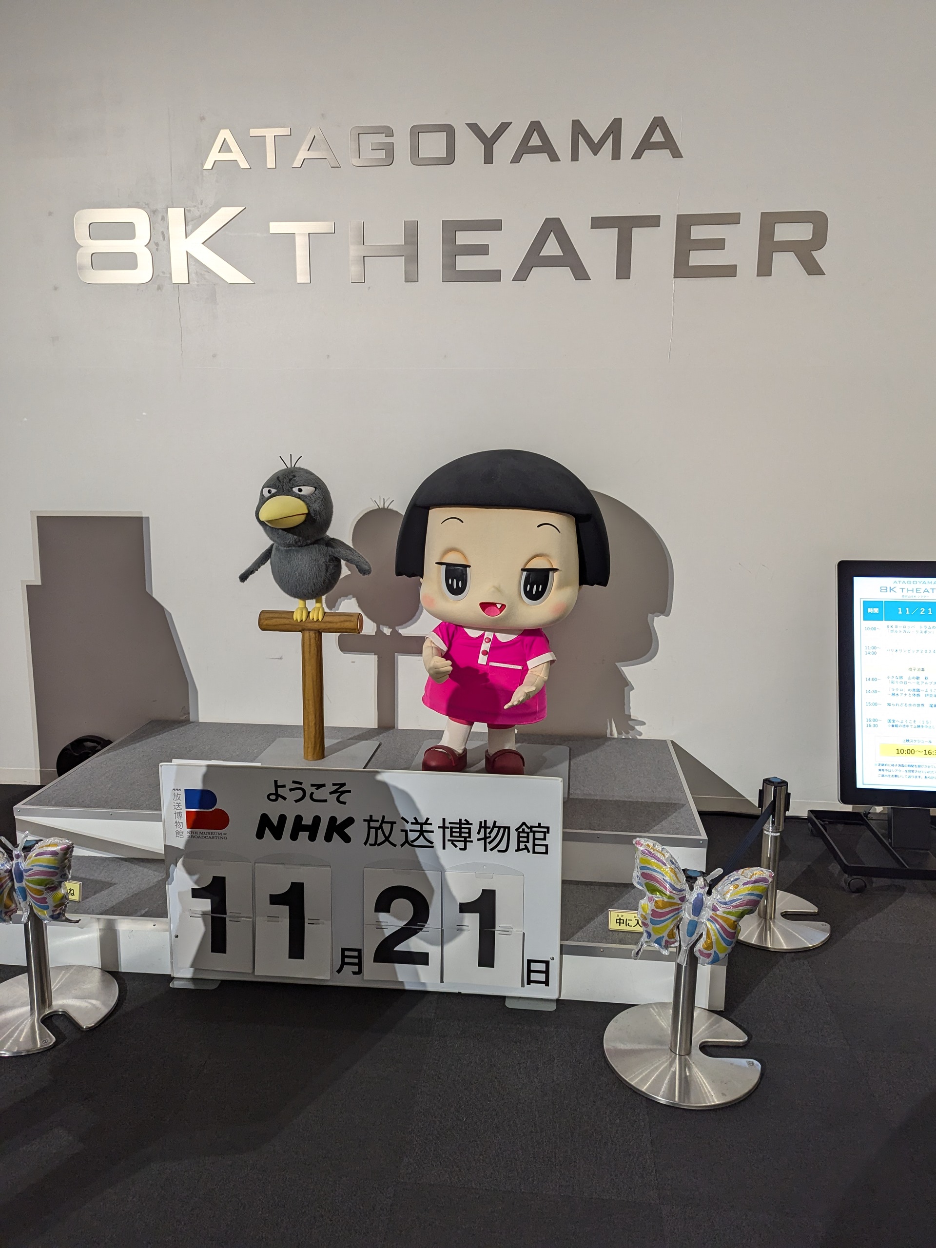 愛宕神社のすぐお隣にありますので、神社に参拝の際は無料ですので是非寄られるとよいですよ。昔懐かしいものから現代の放送技術まで見ることができます。大河ドラマ「光る君へ」の紫式部、藤原道長、おじゃる丸や、ちこちゃんもいました。現在は、「今日の料理」の企画展示もされていて企画がいろいろならいつ行っても楽しいかもですよ。天気予報とかアナウンサーになった気分も楽しめるスペースありました!あと画面上は海の中にいるみたいなスペースも。放送の歴史だけでなく楽しみました。