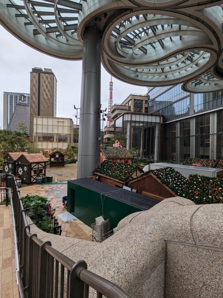 おしゃれ感ただよう麻布台ヒルズは、クリスマスマーケットの準備中でした。