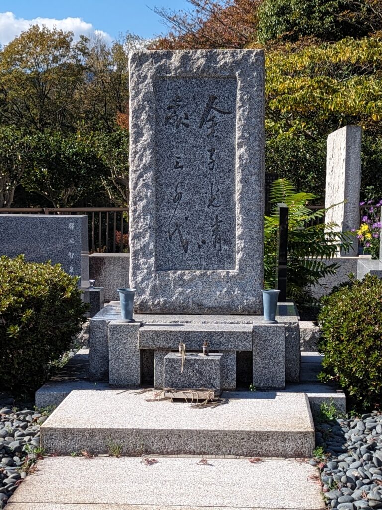次は、金子光春(詩人・旅行家・エッセイスト)1895~1975墓には金子光春さんの名だけでなく、同じく作家であった森三千代さんの名も刻まれていました。戦争反対論者であり、風刺やあてこすりなどが詩に込められていましたが、一見読んでみると、戦争賛成?という風にも受け止められるが、戦時中下比喩や伏字などを使って出版をしていたという本人の証言や研究結果が得られているようである。残念ながら、私は読んだことがない。