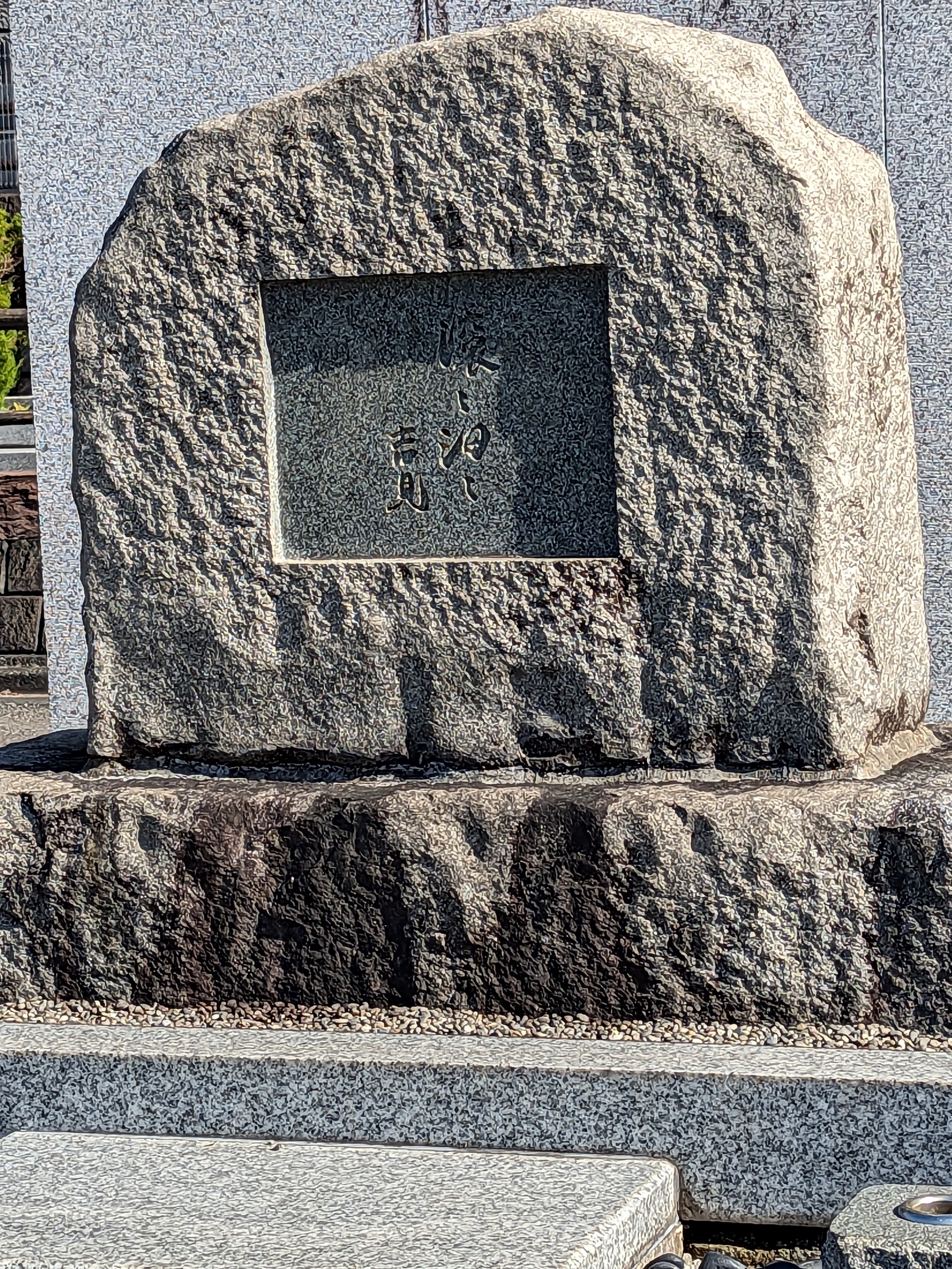 次は、臼井吉見(1905~1987)この方の作品も存じ上げませんが、筑摩書房編集者として「現代日本文学全集」などを企画したそうです。他には、『事故のてんまつ』で、川端康成の自殺の真相?を刊行し、遺族と裁判沙汰に・・・書籍は絶版になったそうです。墓石には、「滾々汨々(こんこんいついつ)」と刻まれており、意味は、アワの消えるかたっぱしから新しいアワができ、できるかたっぱしから古いのが消え、終わりがない。どうやら、座右の銘だったらしいですが・・・作家さんらしいですね。
