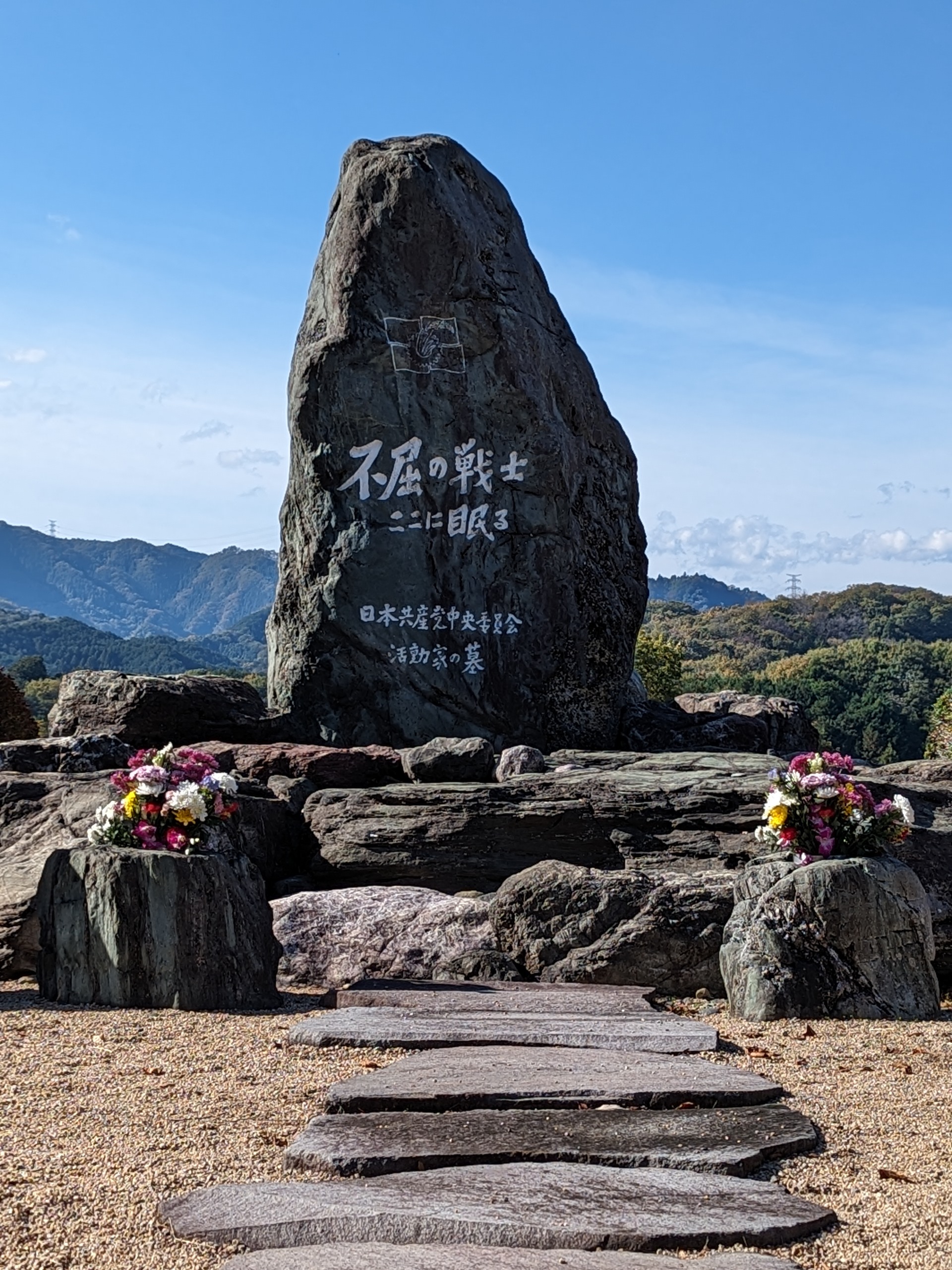 この碑は「日本共産党中央委員会活動家の墓」と書いてあります。日本共産党は、「赤旗」で侵略戦争反対を訴え続け、戦時中は弾圧が激しくなりました。治安維持法により逮捕されて、命を落とす党員が増えました。そんな不屈の精神の活動家のための墓碑なのでしょうか。歴史上思い出されるのは、小林多喜二。小説『蟹工船』の作者で、特高警察に逮捕され虐殺された作家ですが、彼もその不屈の精神の活動家だったのでしょうね。政治の世界にも歴史を感じます。