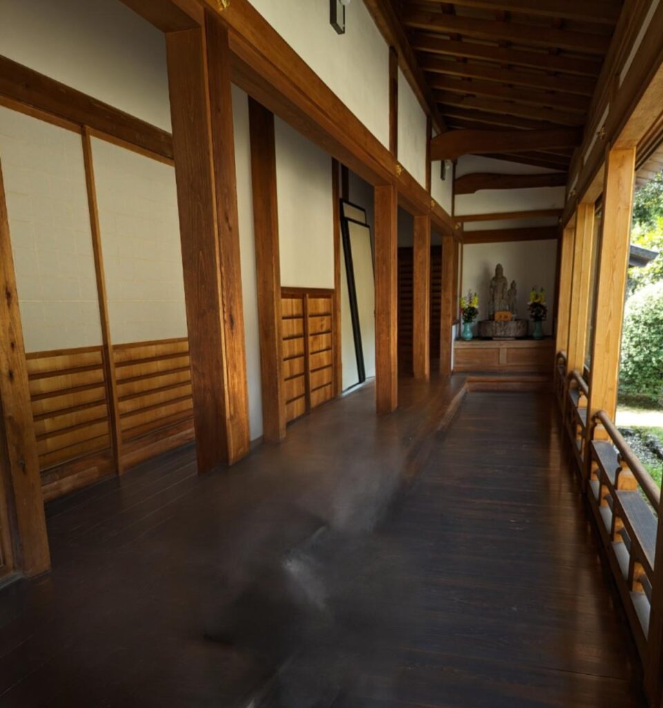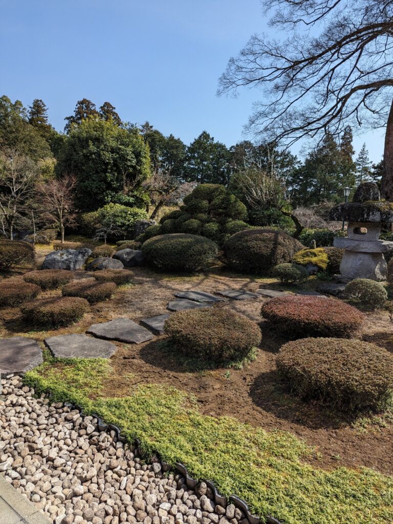 さて、能仁寺へ再びお庭を300円支払って拝見。表側から見えないのですが、お寺の本堂脇の廊下やお部屋から素敵なお庭を観ることができます。下に腰をおろしてお庭を眺めた時間はまったりと癒される感じでした。