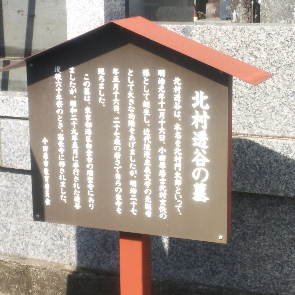 こちらには北村透谷のお墓があります。正直どんなイメージも私にはないのですが、どうもこの方は婚約者があった女性を別れさせて妻にするというなんとも明治の人とは思えない情熱といえば聞こえは良いのですがその後27歳の若さで命を絶つという妻を不幸にしたのでは?と疑うくらいのひとりよがりな浪漫文学者という感想をもちました。