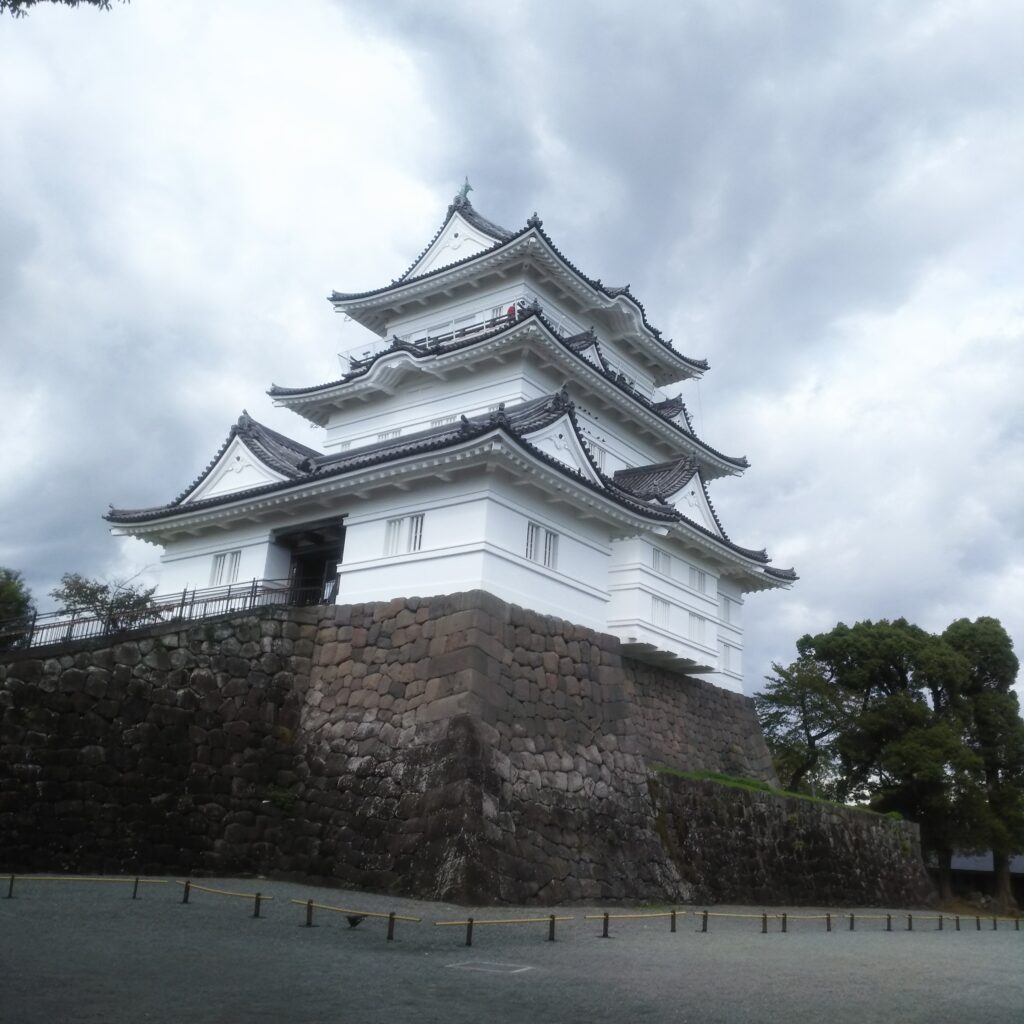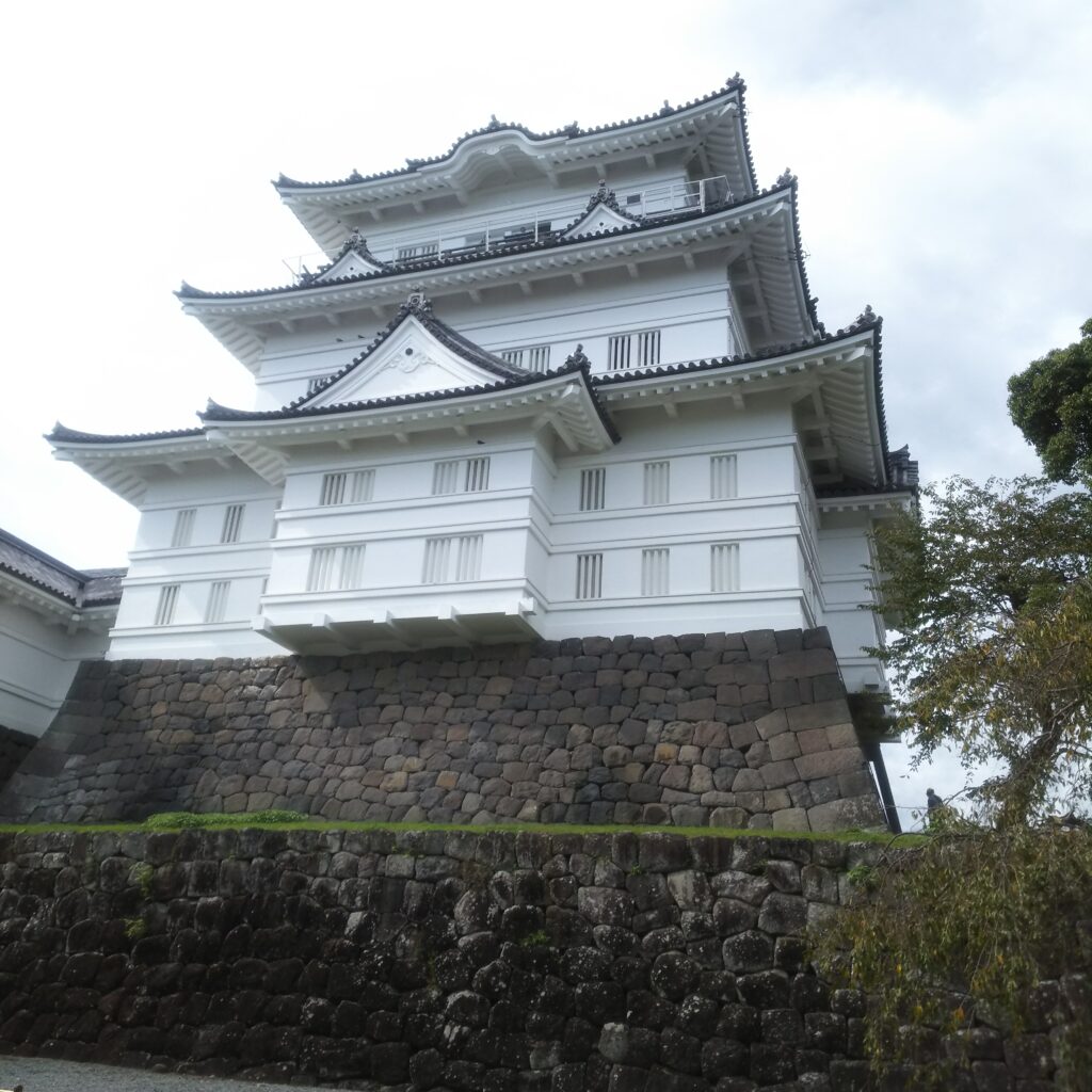 古地図をみると城内を思わせるまっすぐではない道を、進むと・・・小田原城へ立派な天守閣が現れました。510円で天守閣へ。小田原城の歴史が城内をまわると詳しくわかります。北条家5代にわたる歴史や戦国に生きたその末路やまた、天守閣からあの一夜城跡もみることができますが、もちろん木々に覆われておりました。