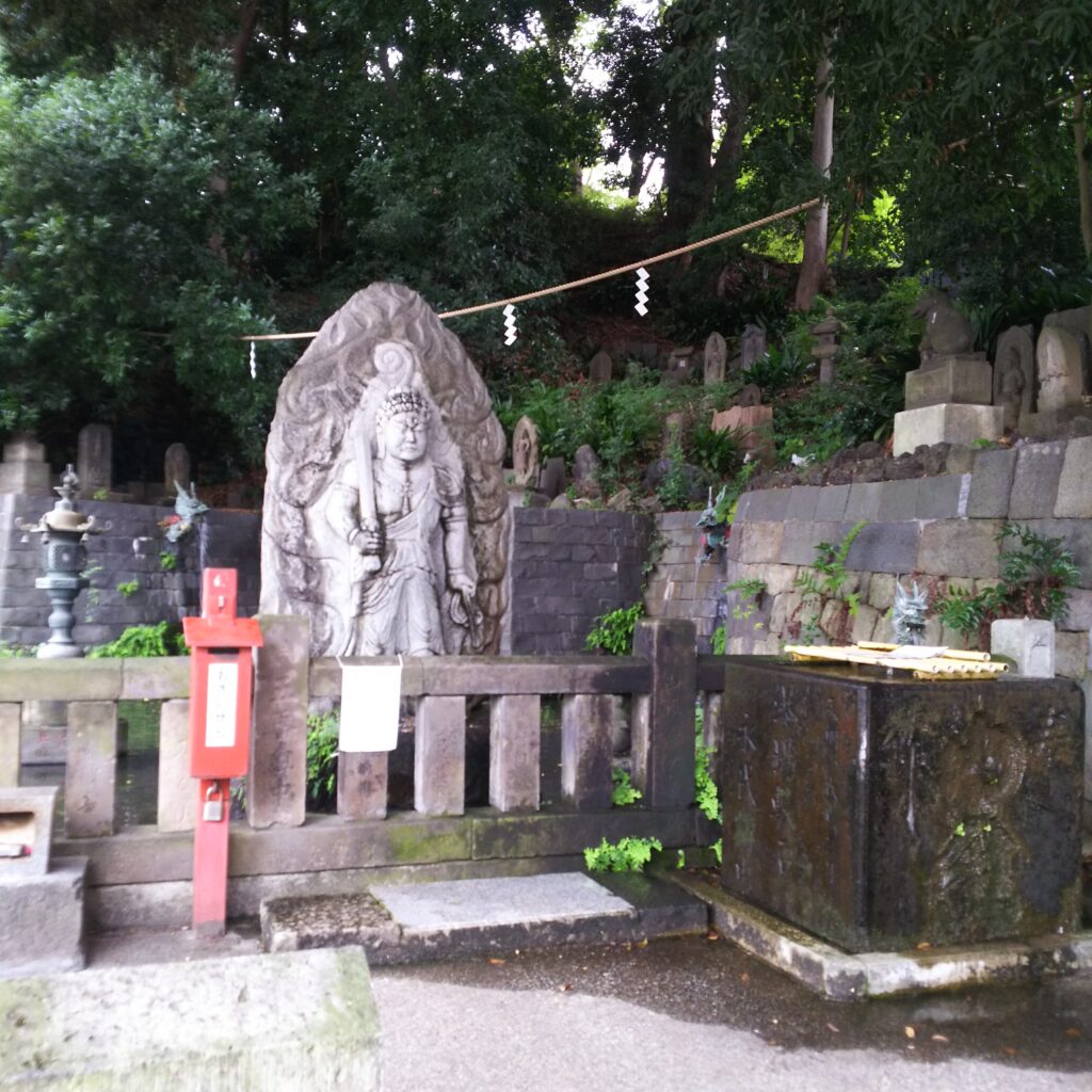 裏手から入っていくと黒の大日如来が座しておられました。立派なお姿が裏手にあるのは少しもったいないですが、りりしいお姿でした。本堂をくるりとまわって正面へ。本堂周りには甘藷先生の像やサツマイモが植わっていました。本堂に向かって左手に独鈷の滝がありましたが、現在コロナの影響で柄杓を手にすることが禁じられているようで、おさいせんと母の腰と足の痛みをとってほしいなぁ・・・と拝んできました。恵比寿さんもいたので、おさいせんと商売繁盛をがんばるぞーーーー!と拝んできました。