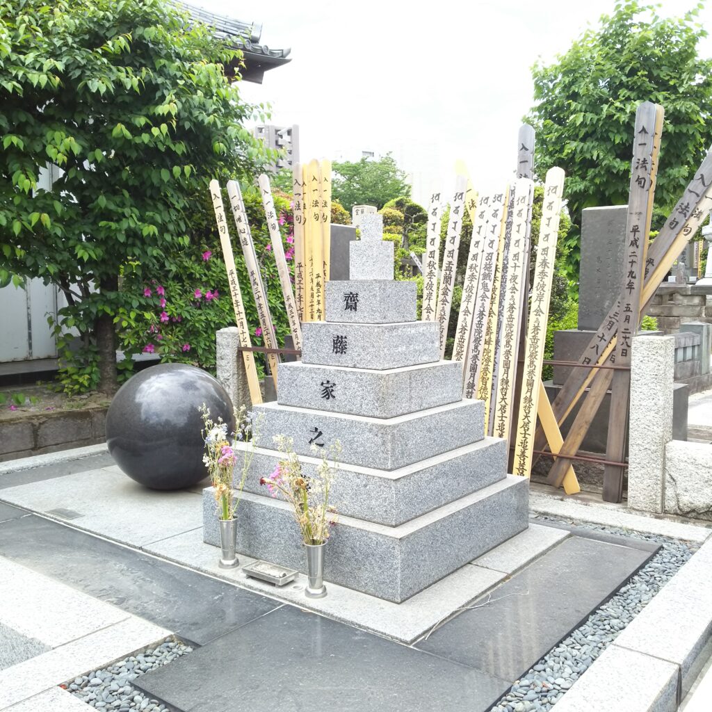小説家。斎藤家へ養子に入っているのでお墓は斎藤。この墓のデザインは横尾忠則だそうだ。1952年に『イエスの裔』で第26回直木賞を受賞。すごく変わっている。柴田錬三郎といえば、眠狂四郎・・・田村正和さんの円月殺法をテレビで観たことがある。話の内容は覚えていないが。時代物で「剣豪小説」というジャンルを作った作家かな・・・