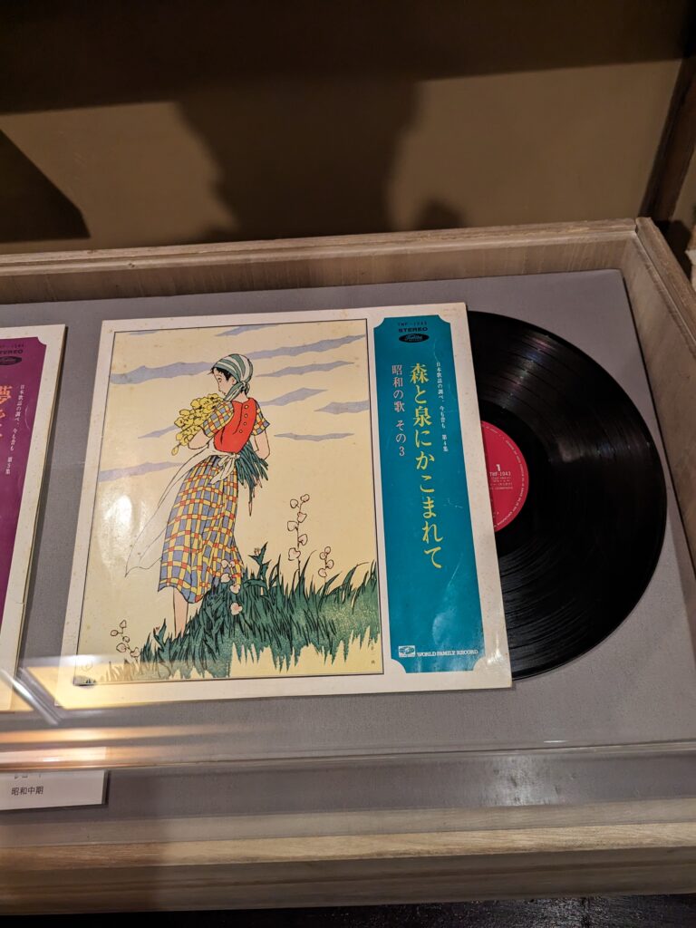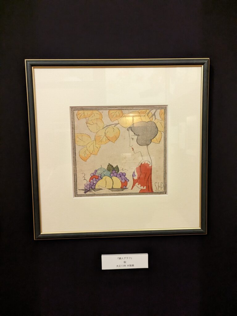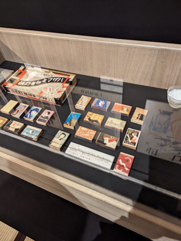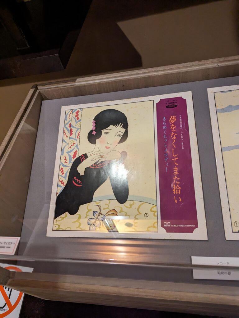 昭和初期の頃からの流行りがわかる作品というか、夢二が活躍したころのデザインがエモいです。特に女性が手にする雑誌系の表紙は素敵だし、レコードジャケットもすごくいい。マッチ箱がなんとおしゃれなことか。物を包むもの箱や包み紙・・・日本人てこういうところのデザインとかイラストとか凝るよなぁと思いながら。デパートなどのおしゃれな包みや紙袋を母の世代がとっておいてあったのを思いだす。確かにおしゃれだしすてきだったな。