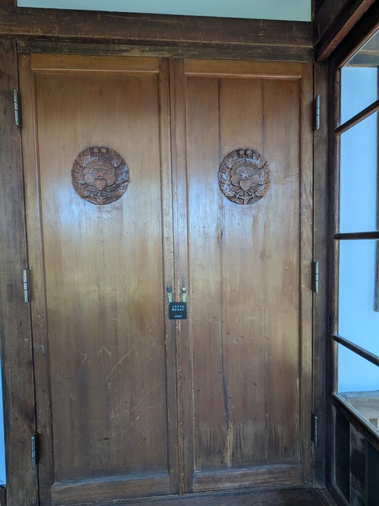 とても素敵なお部屋がいくつもありますので、写真でみてね。伊藤忠太設計ですが、この方は、築地本願寺や明治神宮の設計でも知られ、古社寺保存会委員や国宝保存会委員として、日本の国宝や重要文化財の保護に多大な貢献もしました。建築史家でもあるんですね。とても素敵なお部屋ばかりです。西洋というより中国的な・・・