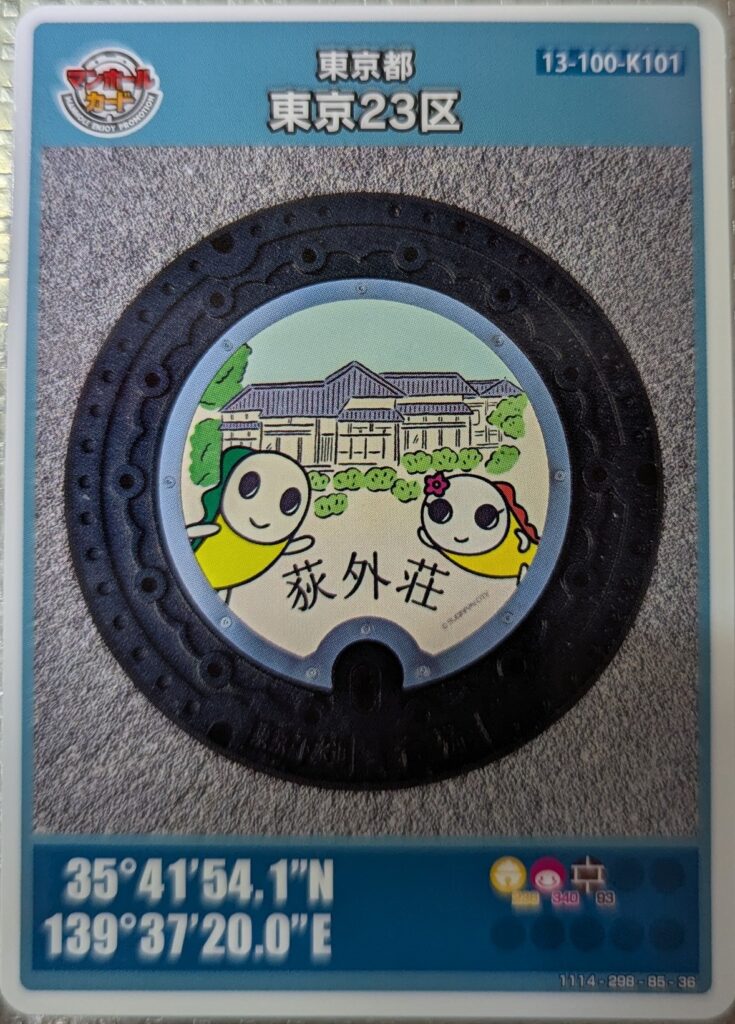 東京23区荻外荘マンホールカードもらえました。レア?でしょうか・・・こういうの集めている人いますよね。
